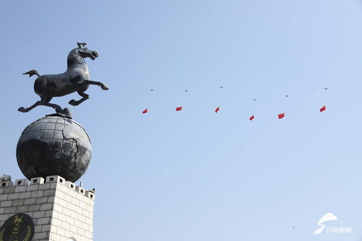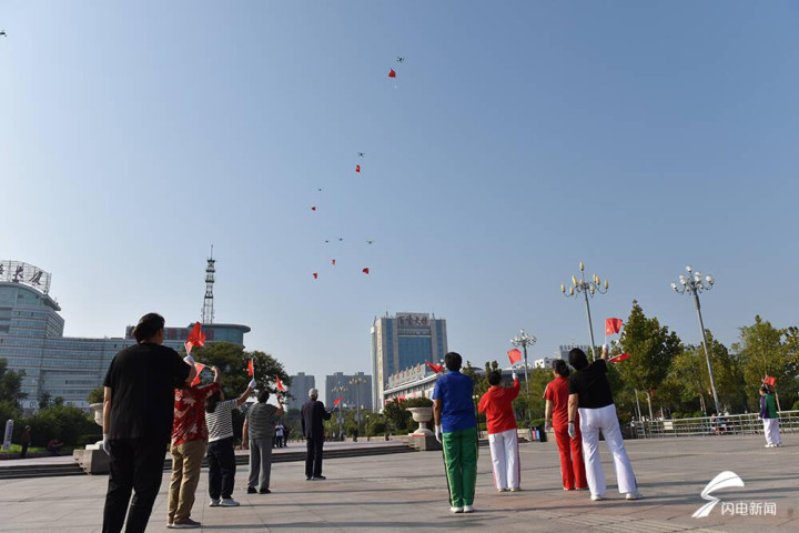 齐鲁网·闪电新闻10月1日讯9月30日实时股票配资平台,七架无人机悬挂五星红旗,在德州市中心广场飞过,引得市民纷纷驻足拍照,这场面为国庆前夕的德州增添了一抹科技与艺术交融的亮色。