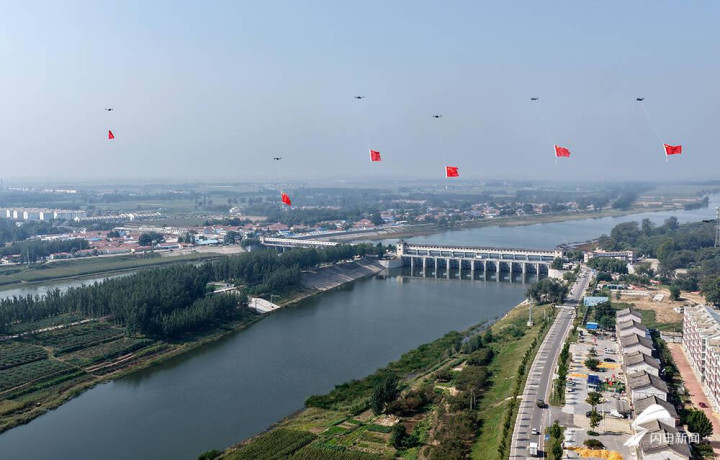 随后,无人机编队依次飞越京杭大运河德州段、具有“北方都江堰”之称的四女寺水利枢纽、长河公园等德州具有代表性的地标。