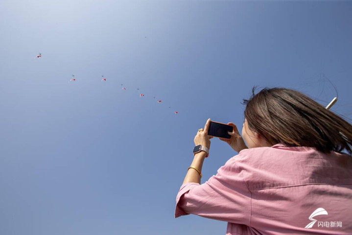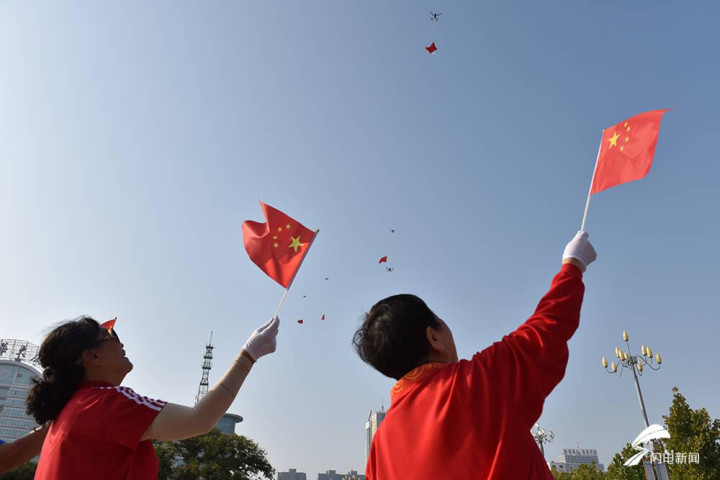 今年76岁的市民刘先生正在女儿的陪伴下在中心广场遛弯儿,看到无人机编队激动不已,他说:“我与新中国同龄,今天看到这样的形式庆祝国庆,感觉心潮澎湃,国家的发展日新月异,科学技术更是突飞猛进,祝愿祖国繁荣昌盛。”